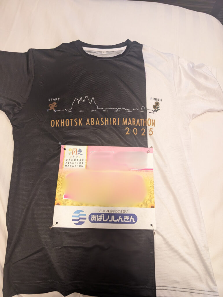 私は前日の開会式会場で買った網走マラソン2025年Tシャツを着て出走!