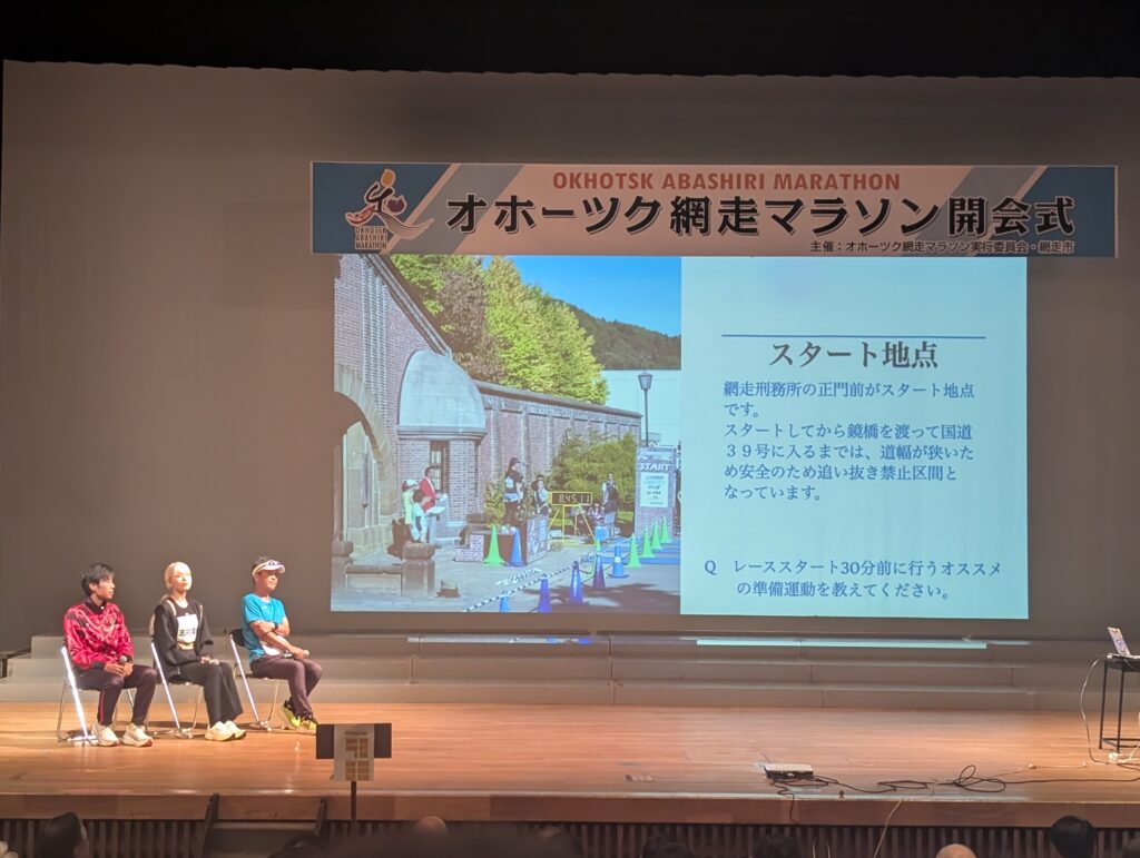 開会式では、金哲彦さんなどのゲストランナーのトークショーや、アップダウンのコース特性を踏まえた攻略アドバイスを聞くことができます。