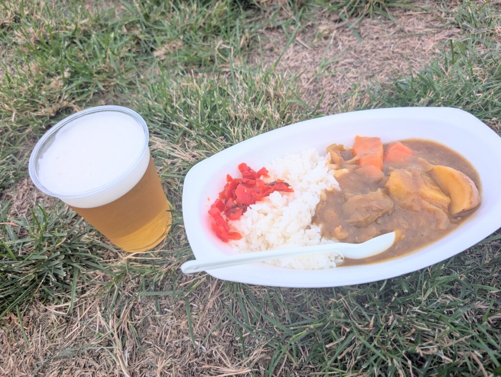 ゴール地点にはフォトスポットや出店が並び、ゆっくり休むことができます。私はご褒美ビールとカレーを購入して、エネルギー回復!