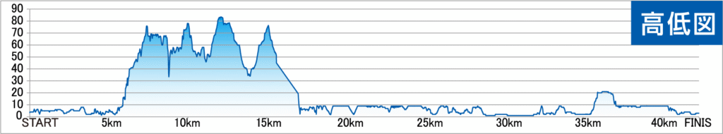 フルマラソンのコースの特徴は、5km過ぎの急激な登り「通称:激坂」とそれに続くアップダウン、そしてゴール地点の圧巻のひまわり畑にあります。