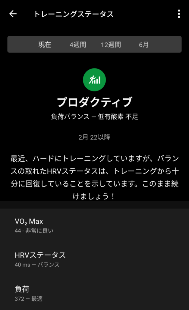 ■トレーニングステータスで今の状態が分かる